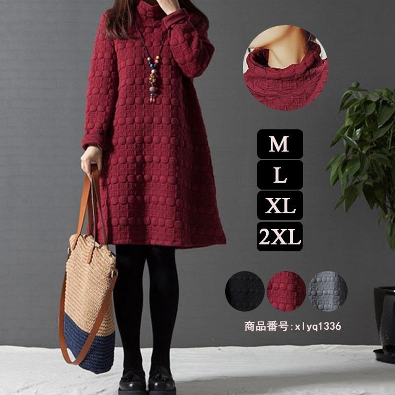 ワンピース レディース 無地 40代 チュニック 冬 防寒 Aライン 長袖 ハイネック 体型カバー 膝丈 ひざ丈ワンピース 赤 黒 灰 ゆったり 秋冬 Xlyq1336 Mm Shop 通販 Yahoo ショッピング