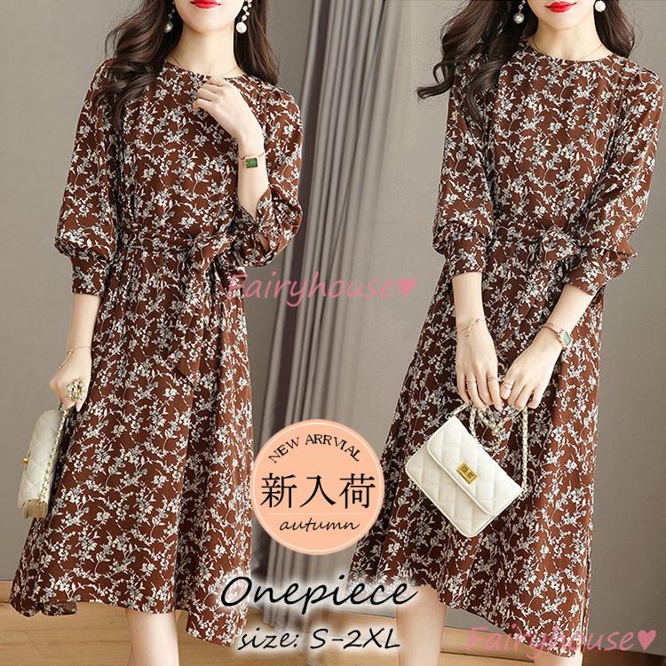 ワンピース レディース 40代 きれいめ マキシワンピース 秋服 長袖ワンピース 花柄 リボン Aラインスカートオシャレお出かけ 大人 体型カバー 30 代 50代 Y Fairyhouse 通販 Yahoo ショッピング