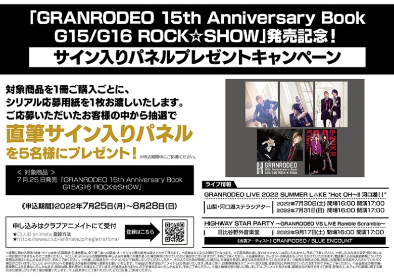 Granrodeo 15th Anniversary Book G15 G16 Rock Show 発売記念 サイン入りパネルプレゼントキャンペーン アニメイト